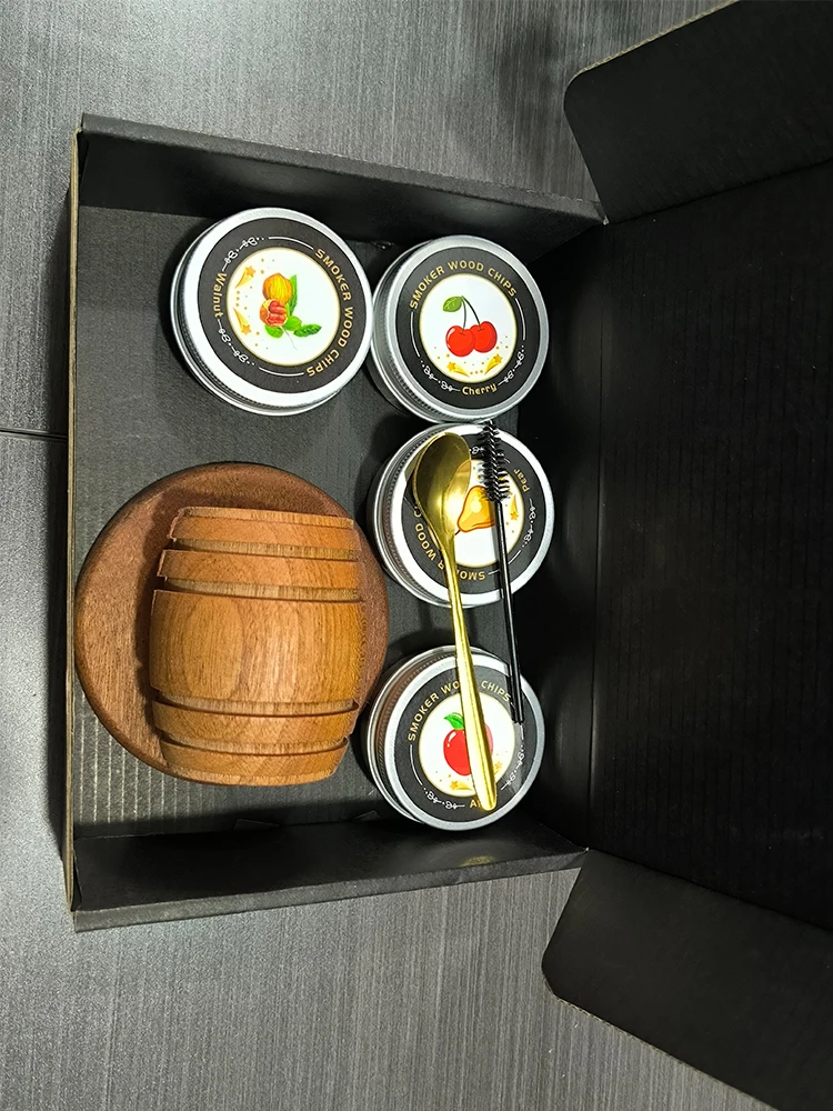 The Wine Barrel Shaped Whiskey Smoker Kit is a tribute to the art of maturation. Designed to sit atop your glass, this infuser allows you to introduce secondary notes of toasted oak, cherry, or hickory, enhancing the natural wood-driven characteristics of your Bourbon or Scotch.